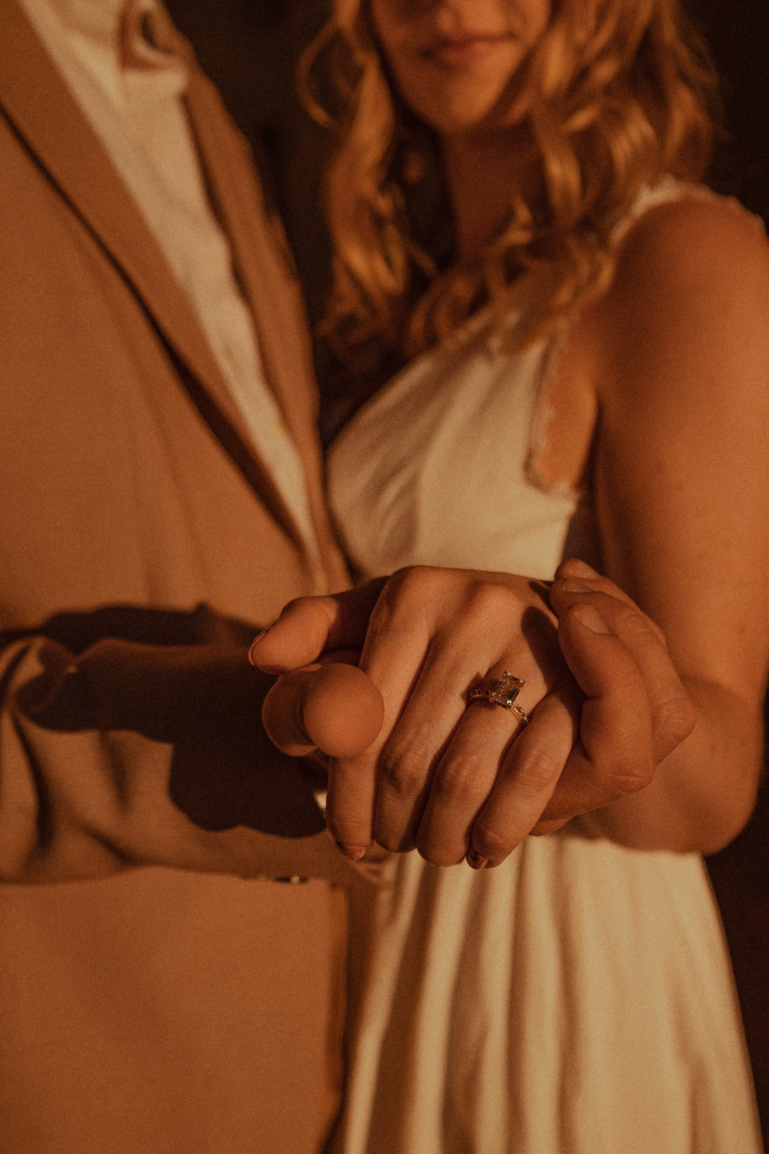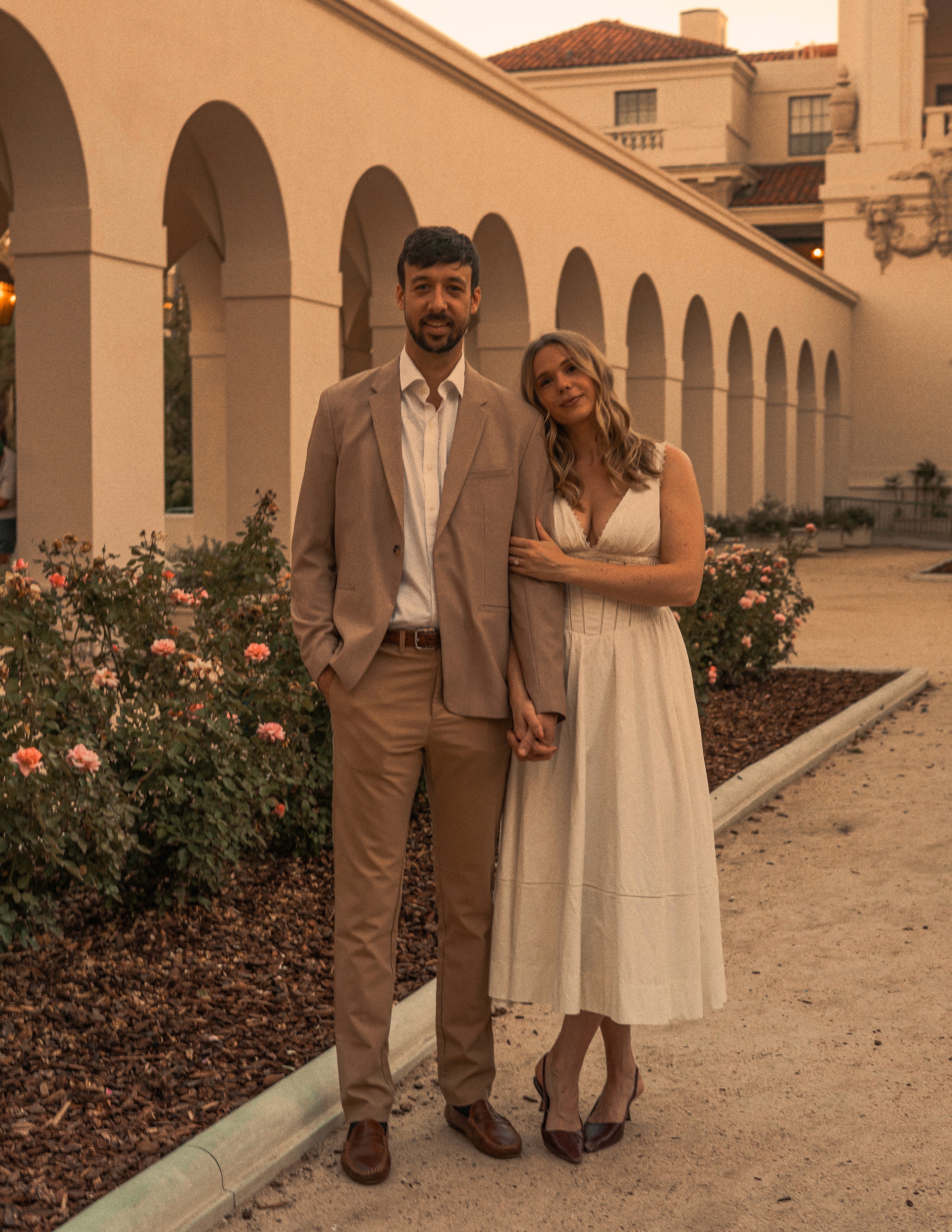 Over the years, we met each other’s families, mixed friend groups, went on trips, and eventually moved in together in Echo Park (the East Side won). That apartment became the place where Chris proposed to me on November 23, 2024. Today, we live in Silver Lake with our four-year-old puppy, Billie, loving our life in LA and excited for wherever the rest of our story takes us.